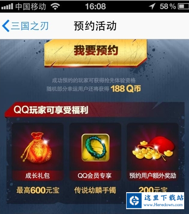 如:成功预约的玩家可获得抢先体验资格,随机部分幸运用户还将获得188Q币哦!