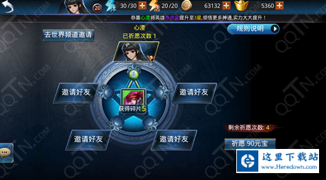 通关第六章之后,祈愿玩法出来了,祈愿玩法在奇遇玩法中,可以选择发起祈愿成为队长,并邀请其他小伙伴加入进来,获得英雄碎片,祈愿的队长可以额外获得碎片哦,当然邀请来的好友也能获得一个碎片,每天小伙伴们都能免费祈愿一次,不过想要再次祈愿的就需要90元宝了,而且还有次数限制哦。