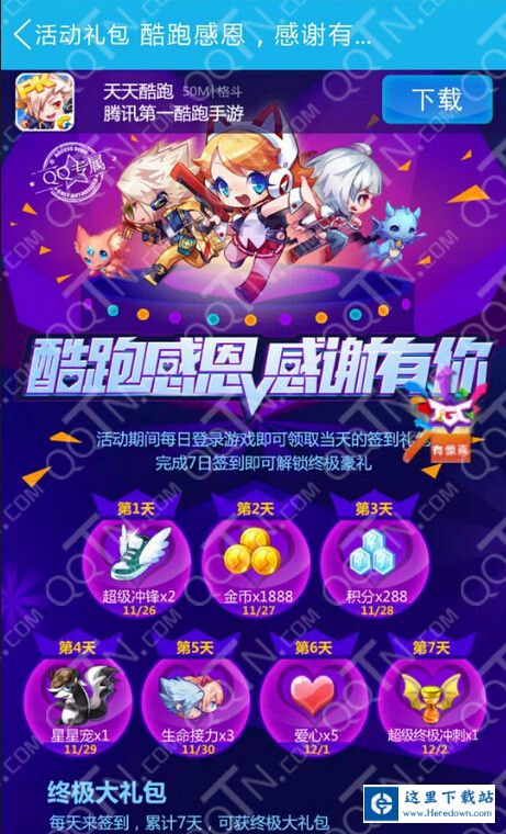 今天11月27日是感恩节,天天酷跑开启新活动“酷跑感恩 感谢有你”!这个活动很简单,玩家们只要连续签到就可以领取各种道具奖励,累计签到7天还可以获得感恩终极大礼包哦。那么这个活动怎样参与?礼包怎么领取呢?下面就由小编为大家详细介绍一下~