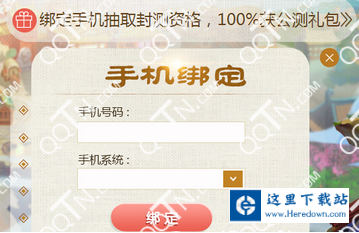 1、填写手机号码和手机系统进行绑定,可以100%在游戏正式公测时获得一个真情重逢礼包。