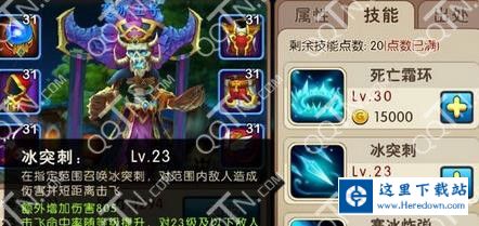 寒冰王子在战斗开始的时候就会用出技能3,一个沙漏状的战斗挂在敌人的脑袋上面,先是造成持续伤害,最后还会对目标附近范围的敌人造成大量伤害。技能1就是一个伤害比较高的AOE技能,还有减速效果。技能2释放后一般会在敌人的队伍中间出现一个突刺,击飞敌人,造成伤害,大概可以创造1至2秒的输出时间。紫色技能就是直接增加英雄的智力,就是增加伤害。推荐玩家主加技能1、2,紫色技能必点。