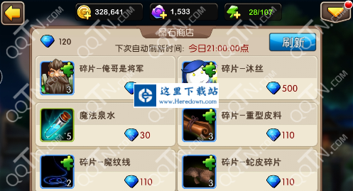 每天获得的晶石请尽快兑换现在需要的英雄碎片,否则哪一天商店里面的英雄碎片变了英雄就后悔也来不及了!