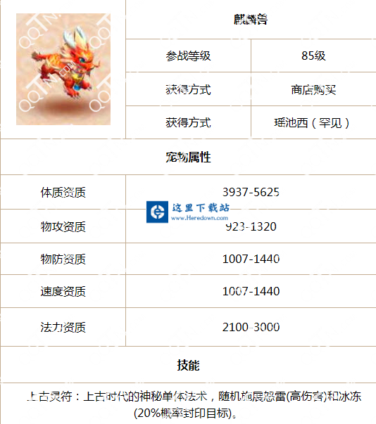 梦幻西游手游麒麟兽怎么样呢?麒麟兽如何获得呢?在梦幻西游手游里,有着众多的宠物,而麒麟兽绝对可以说是极品宠物了,那么下面小编要给各位玩家介绍的是85级宠物麒麟兽的属性图鉴及获得方法。