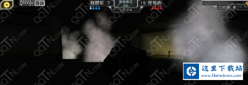 所以就像这个模式的名称那样,该模式的特点就是地图场景中几乎完全没有光线,只有透过几处升腾的烟雾才可以隐约看到敌方玩家的影子。己方玩家虽然也看不清,不过他们的头上都有箭头标识,所以大概位置还是可以分辨的。而如果你看到了一个人,他的头上又没有箭头,那么不用犹豫,他就是你的敌人,朝他开火吧!