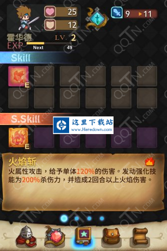 普通技能为火焰斩,火属性攻击,给予单体120%的伤害。发动强化技能为200%杀伤力,并造成2回合以上火焰伤害。总的来说,技能伤害是非常的不俗滴(ps:霍华德普通技能如何使用呢?答:将4个同类纹章连城一线消除可以发动2次攻击同时产生一个技能纹章,就是哪个非常善良的纹章)
