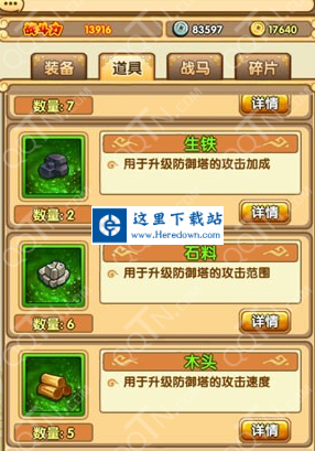 普通关卡,普通关卡挑战,玩友们也是可以获得防御塔升级材料的,生铁是大大的有的