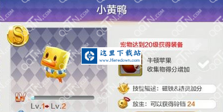 小黄鸭在游戏中,可以吸附周围精灵并且获得加分,是相当不错的宠物哟。它的满级装备是牛顿苹果,也可以带来大量收集物加分。