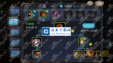 另外,标志的颜色代表英雄品质,为英雄穿戴装备可以提升英雄品质和开启更高级别的装备树,让英雄属性更加强力的同时,某些装备还可以提供出色的被动/主动装备技能。所以努力的给职业标志上色吧!
