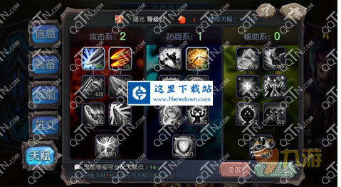 天赋系统在英雄达到22级时开启,分配天赋需要消耗“天赋石”,并且需要拥有“天赋点”。每位英雄都有推荐的天赋分配方案,当然召唤师也可以多加尝试,让你的英雄向不同职业路线发展。