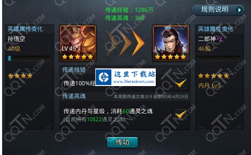 当然这个也是有限制的,英魂传递次数以两周为1个周期,每个周期内最多可以进行9次英魂传递,每个周期的刷新时间为周三凌晨3点,同一周期内,英魂传递次数越多,消耗的通灵之魂越多哟。