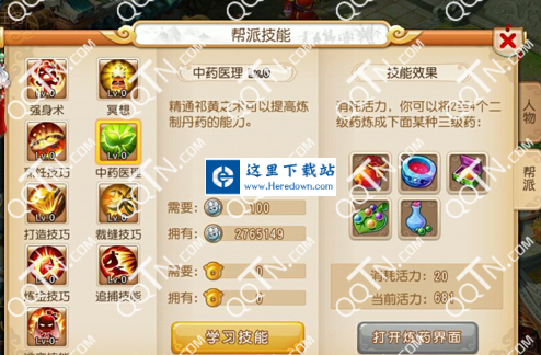 值得注意的是,药品品质受到中医药理技能等级影响,而且,如果二级药不足的话可使用6000银币直接炼药。
