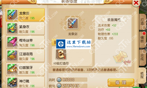 2、失败3次的装备无法再用制造符修理,但可以用珍珠修理。