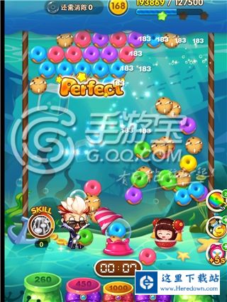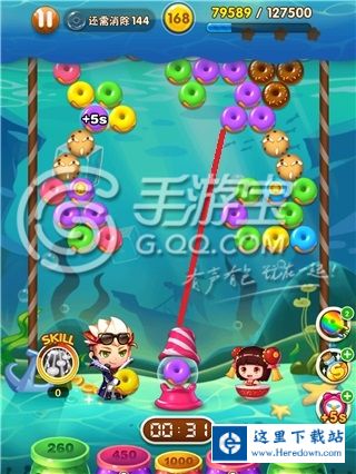 《全民泡泡大战》的168关,是一个时间关卡。关卡内会遇到吸色泡泡、冰块、横消泡泡等多种障碍物。在消除的时候,需要用到很多的小技巧才能顺利过关。下面就具体的几个难点,结合图例来详细说一下。