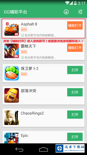 1、下载安装好狂野飙车8以及GG助手,如图所示,点击进入GG辅助平台