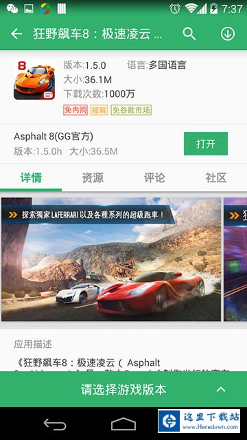 2、点击狂野飙车8