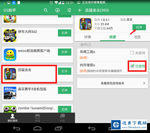以游戏【迅猛追击】为例。下载安装好改游戏后在GG助手上我的游戏里面找到该游戏。(见图)