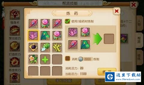 材料选择:长安药店鹿茸、麝香、血色茶花等二级药并不是首选,最好的材料为火凤之睛、凤凰尾、孔雀红、血珊瑚,该二级药无法通过购买获得,需要参加每周二、周四帮派百草谷活动获得。
