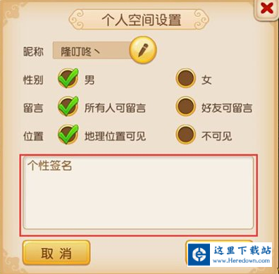 第三步、点空间设置,进入后就可以看见个性签名的填写框了。