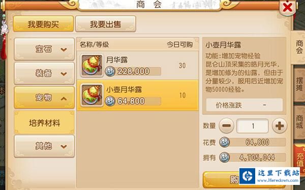 小壶月华露获得途径:游戏界面左上角的商城→商会→左侧宠物→培养材料。