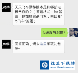 提问:天天飞车漂移版本是和哪部电影合作的?(答题格式:fc+答案,例如答案是飞车,则回复“fc飞车”答题)