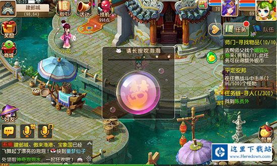 儿童节活动期间,可以前往长安城,找童梦仙子领取活动专用道具“神奇泡泡水”。与中午12:00-13:00,晚上18:00-19:00,22:00-23:00,前往建邺城、傲来渔港、傲来国参与该玩法。