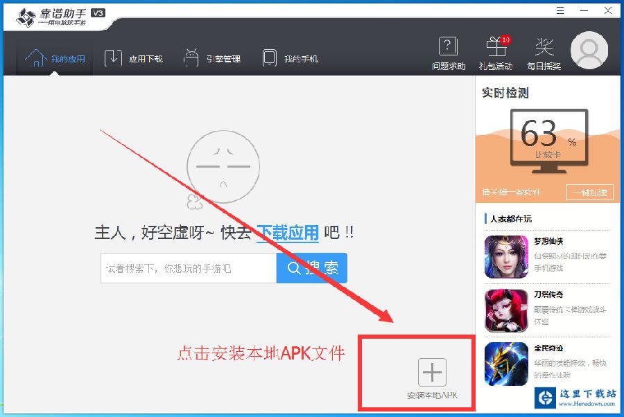 4、引擎安装完成之后,点击我的应用,如下图所示,点击安装本地APK