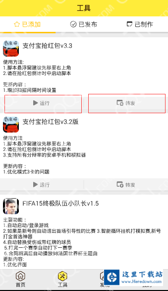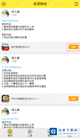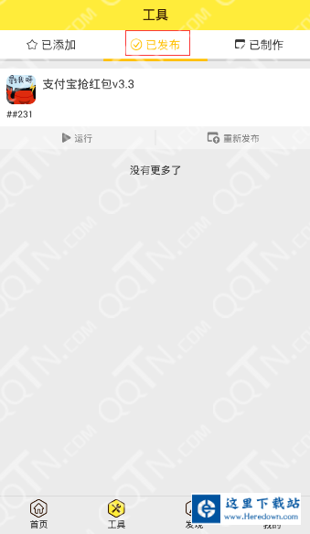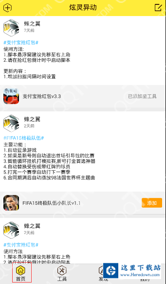 4、进入作者主页,添加最新版支付宝抢红包辅助,添加后在工具的已添加中运行。