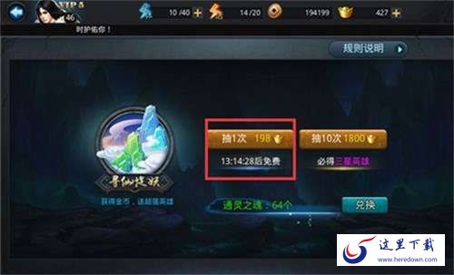 作为奇遇中的一个重要环节,寻仙捉妖是每一个玩家获得英雄,以及提高英雄星级的必备环节,每22小时玩家就有一次机会免费抽取。