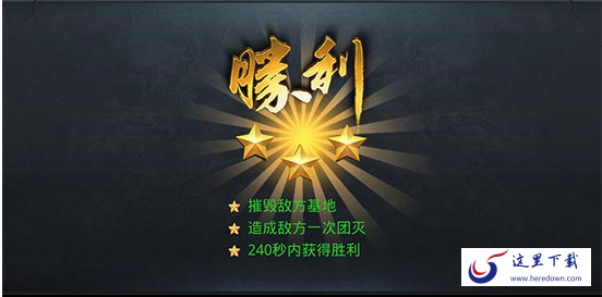 摧毁基地,造成敌方一次团灭,240秒获胜