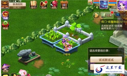 如果福神来到了你的家中,那么玩家可以将(五宝、药品、烹饪、阵法书、宝石、魔兽要诀)等物品给予小福神来施法。有几率获得双倍,也有几率物品消失。