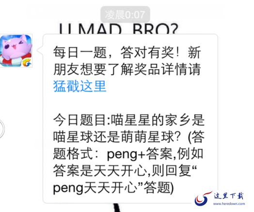 今日是7月25日。天天爱消除每日一题:喵星星的家乡是喵星球还是萌萌星球?(回答方式:peng+答案,例如答案如果是天天爱消除。则回复peng天天爱消除,这样就算是正确答案。)