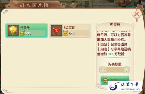 神兽丹(200积分) 1级随机属性宝石(640积分)