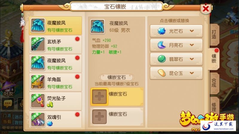 衣甲:光芒石、月亮石、翡翠石、昆仑玉