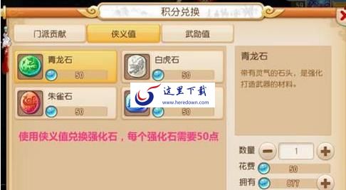 商城里的强化石目前只能靠侠义值来兑换,而且耗费的侠义值随着服务器兑换量每小时刷新的,60级的装备强化打造就需要6块强化石了,70级的需要8块强化石……(100级的需要100块)。一些没有充钱的玩家想要打造极品装备,只能靠日复一日的刷侠义来兑换石头打造装备,看着这茫茫多的侠义值(默默的流泪),所以每天都尽量把侠义值拿满吧。