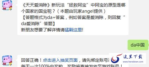 《天天爱消除》新玩法“拯救阿宝”中阿宝的原型是哪个国家的国宝呢?8月14日每日一题活动已经更新,今天的题目就是考验玩家们玩游戏的时候细不细心了,下面一起来看看天天爱消除8月14日每日一题的答案吧。