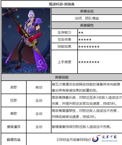 高渐离是英雄战迹中的英雄,作为团队buff机的法师,伤害,增加己方战斗力于一体!那么高渐离要怎么才能获得呢?他的属性如何,高渐离的技能又有哪些呢?就跟小编一起来看看吧。
