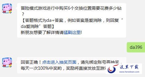 天天爱消除冒险模式游戏进行中购买6个交换位置需要花费多少钻?8月18日每日一题活动已经更新,今天的题目就是考验玩家们玩游戏的时候细不细心了,下面一起来看看天天爱消除8月18日每日一题的答案吧。