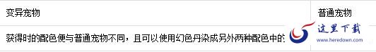 综上,变异宠物与普通宠物的区别主要就在于外观、资质、获得途径和用途方面,其中资质应该是小伙伴们最关心的。虽然获得的变异宠物资质不一定比普通宠物高,但只要有足够的资质培养丹和炼兽珍经,一个技能不错的变异宠物肯定要比同样条件下的普通宠物优秀——理论上是这样,可惜实际上能兼顾资质和技能的变异宠物太难得,有的话估计能卖出天价啦。