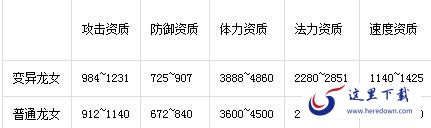 当然只有外观不同是对不起“变异”两个字的,变异宠物们的资质下限和上限都高于普通宠物,下面以龙女为例,大家对比便知。