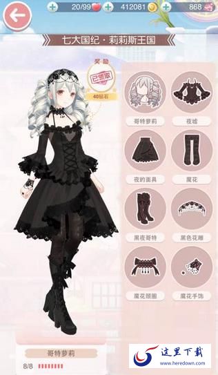 莉莉丝王国套装还有一套符合哥特风装扮的套装就是哥特萝莉套装,但这一套装整体分数并不高,才五万多一点,心愿结也就十一二个,我们可以使用其中部件,全套并不建议使用!