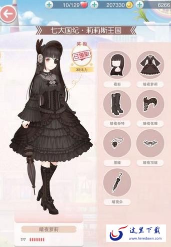 莉莉丝王国套装中有一套就是暗夜萝莉套装,如果有这一套装,直接用就好了,这一套的得分是比较高的。