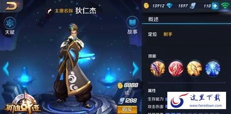 最后给大家推荐狄仁杰,需要8888金币。狄仁杰是远程射手,伤害无与伦比,搭配上符文天赋,1V1敌人不敢靠近,3V3辅助秒杀,玩家差不多到13级左右就可以购买了,还是挺容易获得的。