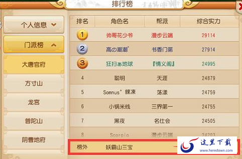 梦幻西游手游个人门派排名查看方法: