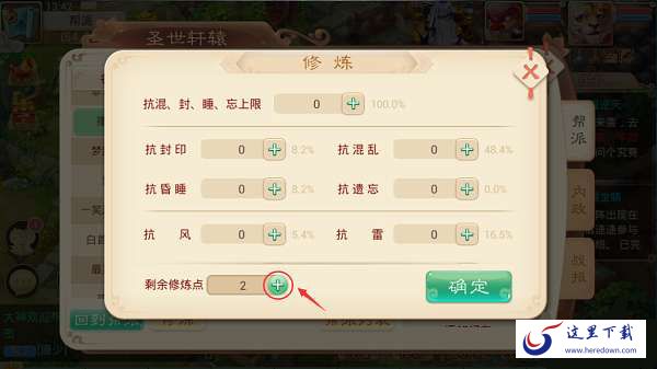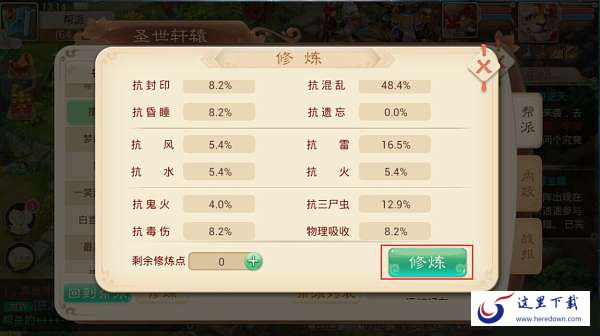 兑换完毕后我们就进行修炼点数的使用,在这里你可以点击修炼按钮,选择性地使用修炼点数增强自身的属性能力。