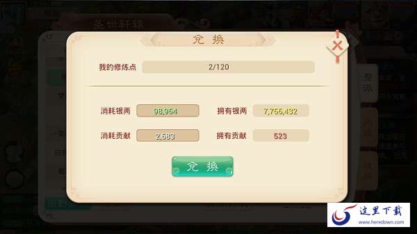 然后我们用银两和帮贡兑换一些修炼点数用来修炼。