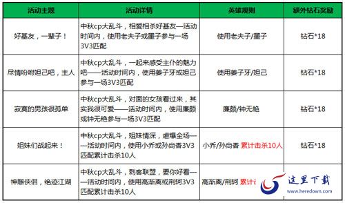 活动规则:活动期间,每天使用指定英雄参与3v3匹配都有额外奖励噢!