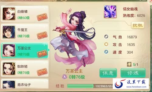 高敏女鬼!万圣公主同样是两种法术,回合开始释放女鬼的魅惑法术减敌方抗性。之后的回合释放鬼火伤敌,值得欣慰的是,万圣公主的伤害丝毫不比其他仙族小伙伴底!值得一带哦。