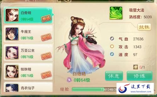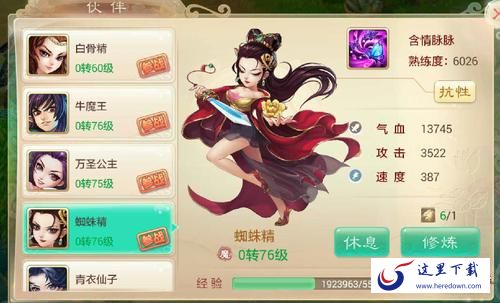 高敏盘魔!蛛蛛精也会两种法术。回合开始释放含情脉脉,增加己方抗性。以后的回合释放震慑法术。大家可以酌情搭配。