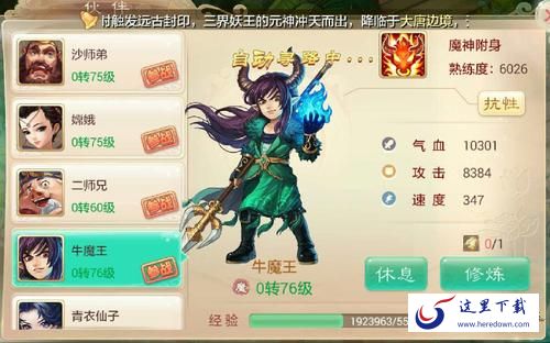 牛仔很忙!老牛会两种法术。回合开始放加攻法术,以后的回合释放震慑法术。除了竞技场,其他各种任务带个牛魔王还是很爽的,牛魔王的敏也不低哦。(牛魔王抗混60点哦)