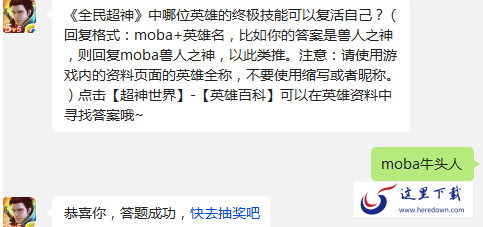 (回复格式:moba+英雄名,比如你的答案是兽人之神,则回复moba兽人之神,以此类推。注意:请使用游戏内的资料页面的英雄全称,不要使用缩写或者昵称。)